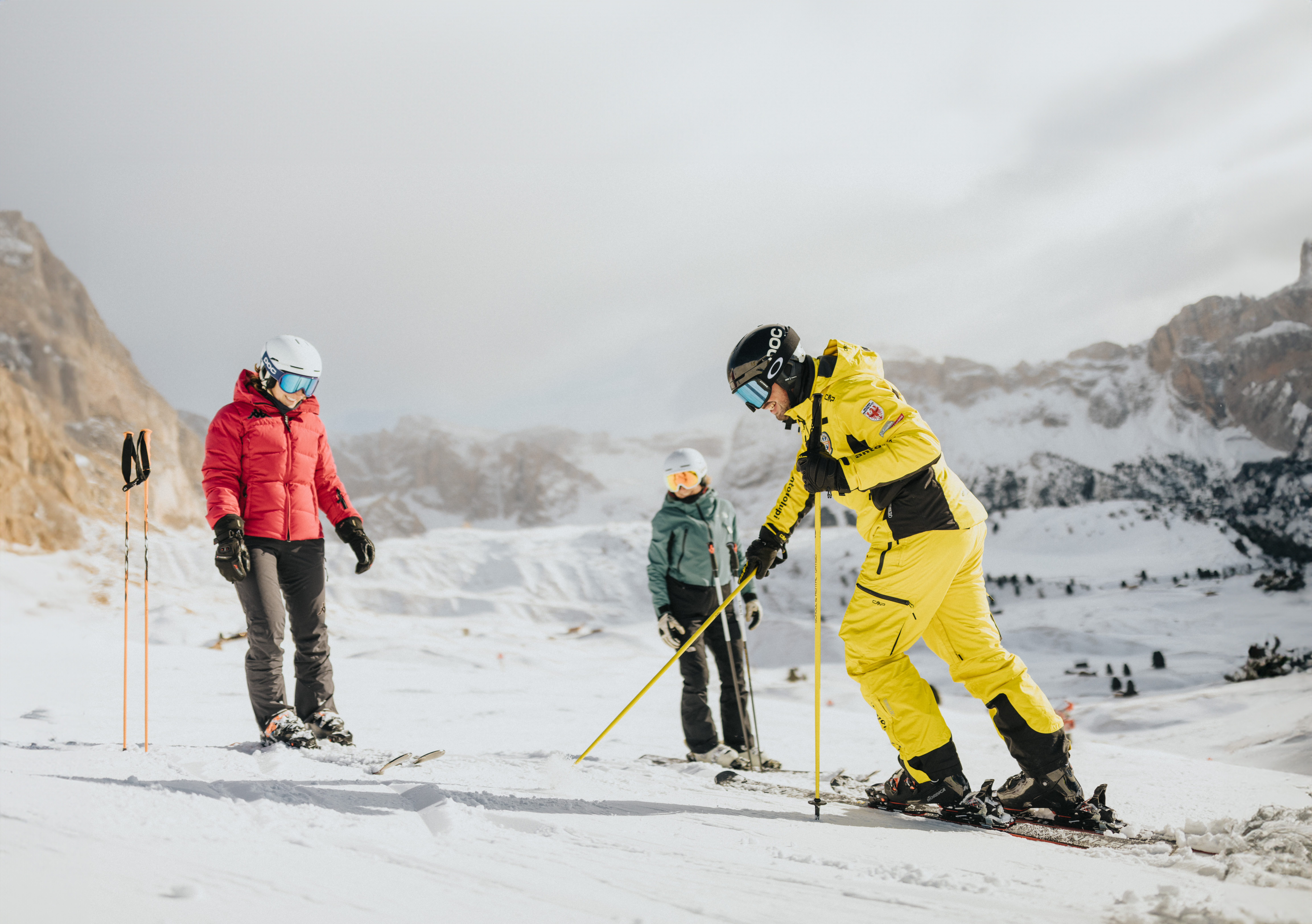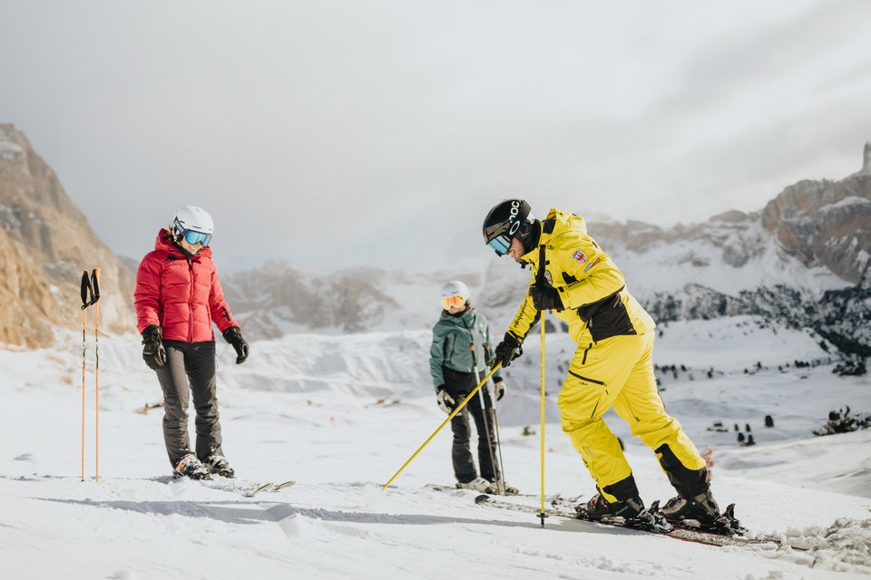 Ganz gleich, ob Sie Anfänger oder Profi sind – es lohnt sich immer, an der eigenen Technik zu arbeiten und diese unter professioneller Anleitung zu verbessern. Direkt an den Skiverleih Saslong in St.Ulrich angeschlossen ist unsere beliebte Skischule, in der erfahrene Skilehrer für den Einzelunterricht gebucht werden können und die Teilnahme an Gruppenkursen möglich ist. Es gibt für jede Leistungsstufe und jedes Alter das passende Angebot.